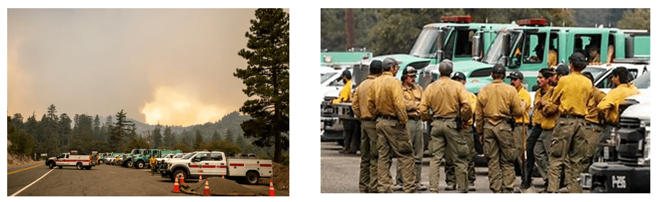 Fire crew watching fire progress near Angelus Oaks on hwy 38