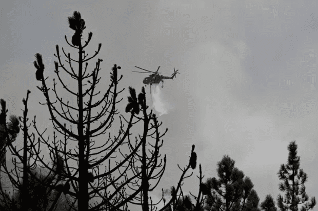 Significant progress was made in primary and secondary line construction. The primary line is on the fire’s eastern edge and is about 2/3 complete, with most additional work remaining on the upper Big Bear Ridge. A new secondary (backup) line under construction includes the west flank of the 2023 Radford Fire burn area, tying down into the bottom of the Santa Ana River. Also, the line is close to being completed south across the Santa Ana Canyon to the Angelus Oaks side, with the last bit about 1/4 mile long in very steep terrain that will have to be done by hand. This south end should be completed late today, which will tie-in the north facing slope of the Santa Ana drainage.