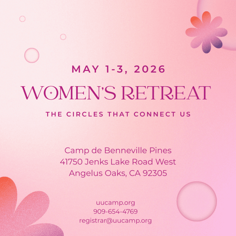Registration: Contact Angela Andiorio, Camp Registrar, registrar@uucamp.org, 909-654-4769