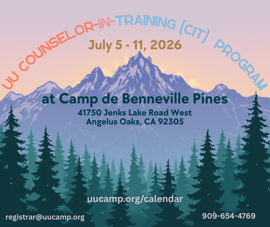 CIT program details or camper concerns/special considerations: Camping Ministries Director, Laura Lunn, cmd@uucamp.org, (949) 300-3645
